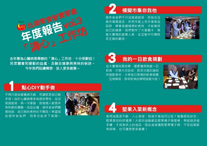 台灣素食營養學會簡介國內少數由醫學角度探討素食的非營利團體。集結各大醫院、大學…等多位有志推廣素食的醫療人員、專家學者,透過講座、食譜、文章,與民眾分享正確的素食營養知識。