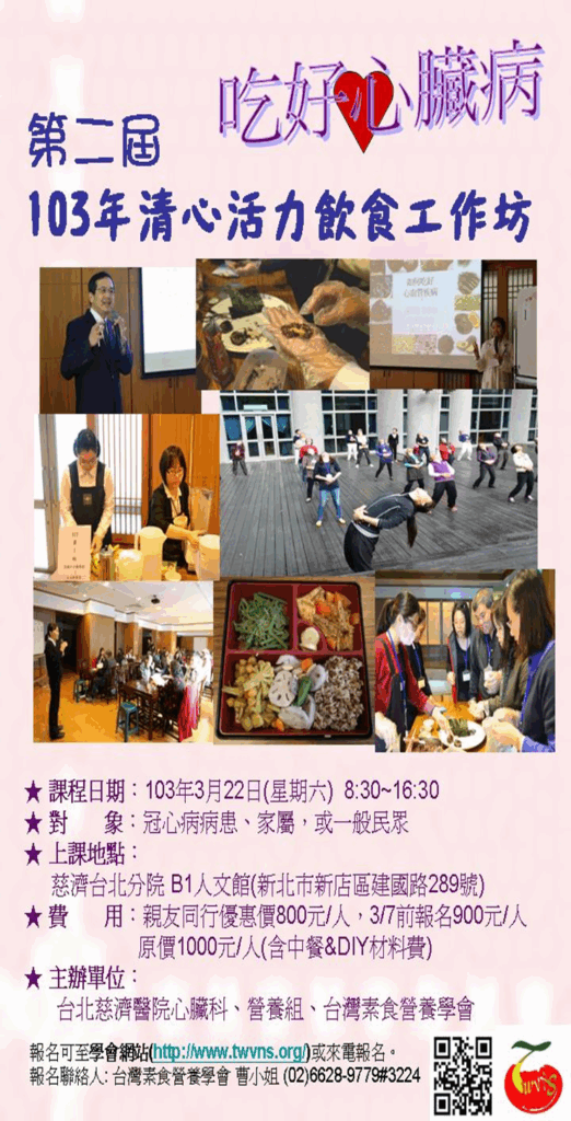102年清心活力飲食工作坊活動開始報名(活動結束)