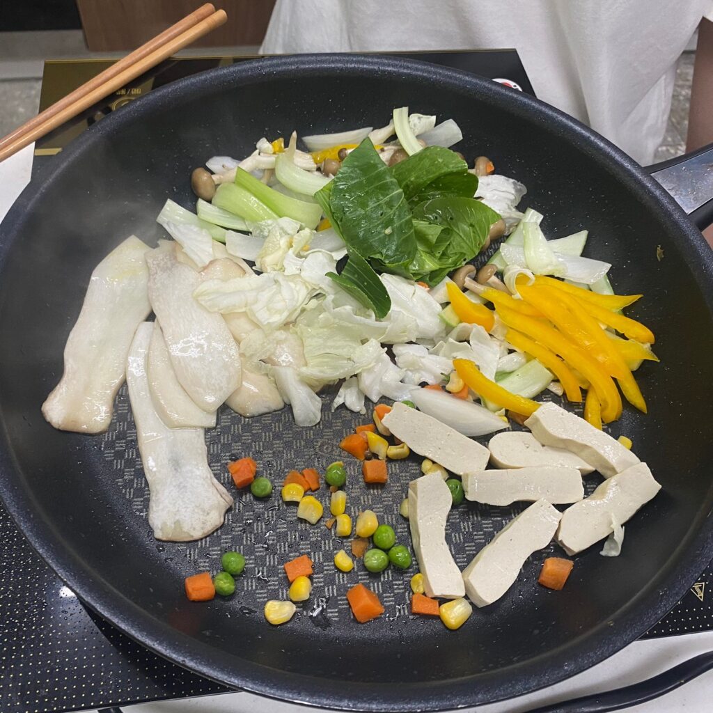 青江菜最後才下鍋混合拌炒一下
