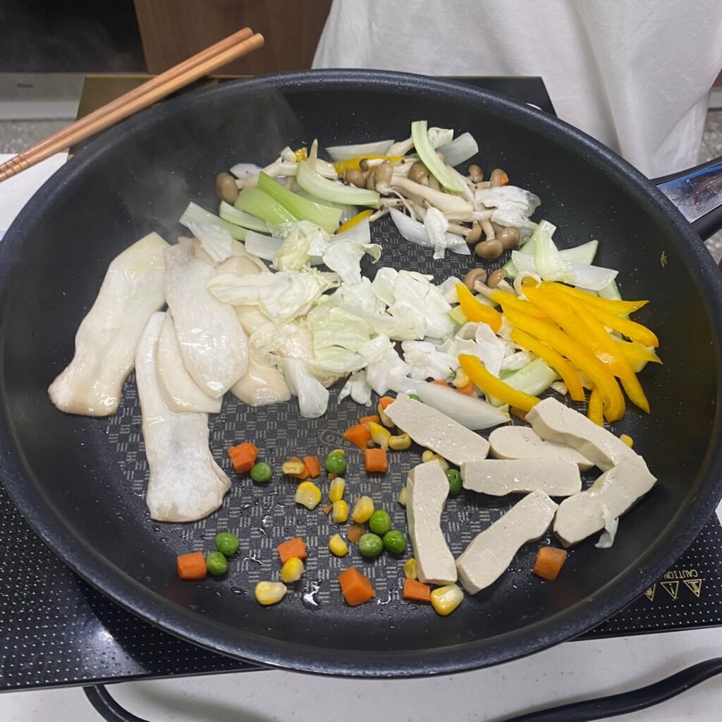 將其他食材下鍋一起拌炒,2~3分鐘