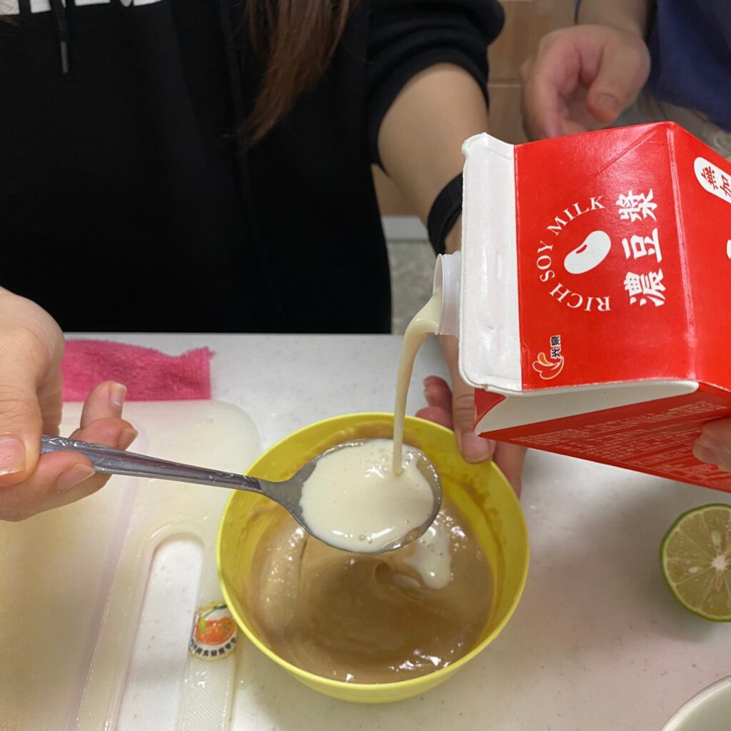 在小碗中放入白芝麻醬、醬油、味醂、無糖濃豆漿、咖哩粉與檸檬汁,攪拌均勻