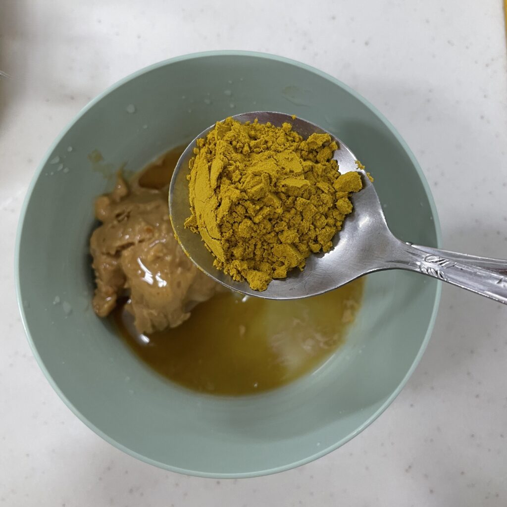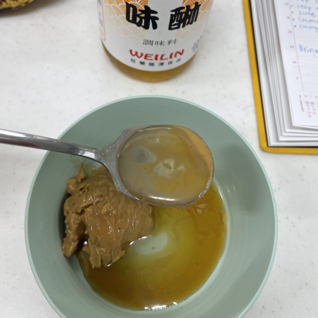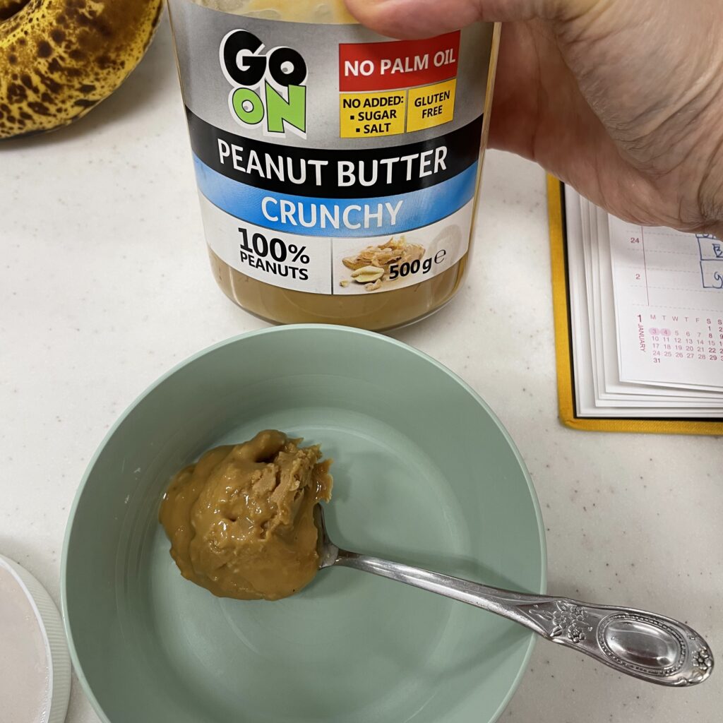 一湯匙的花生醬(有顆粒的花生醬會更好吃)