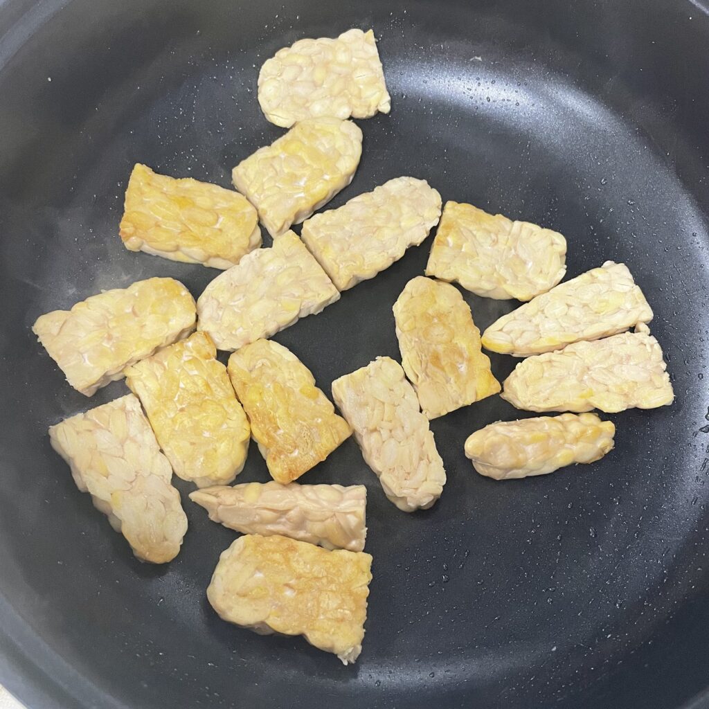 放入天貝,以中小火煎至金黃色