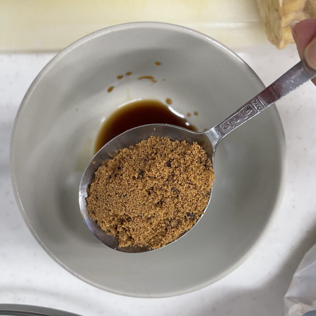 在一個小碗中放入1:1的醬油與黑糖 (確保黑糖沒有結塊),攪拌均勻
