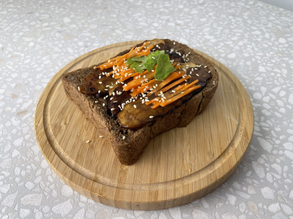 將切片天貝,均勻的抹上醬汁