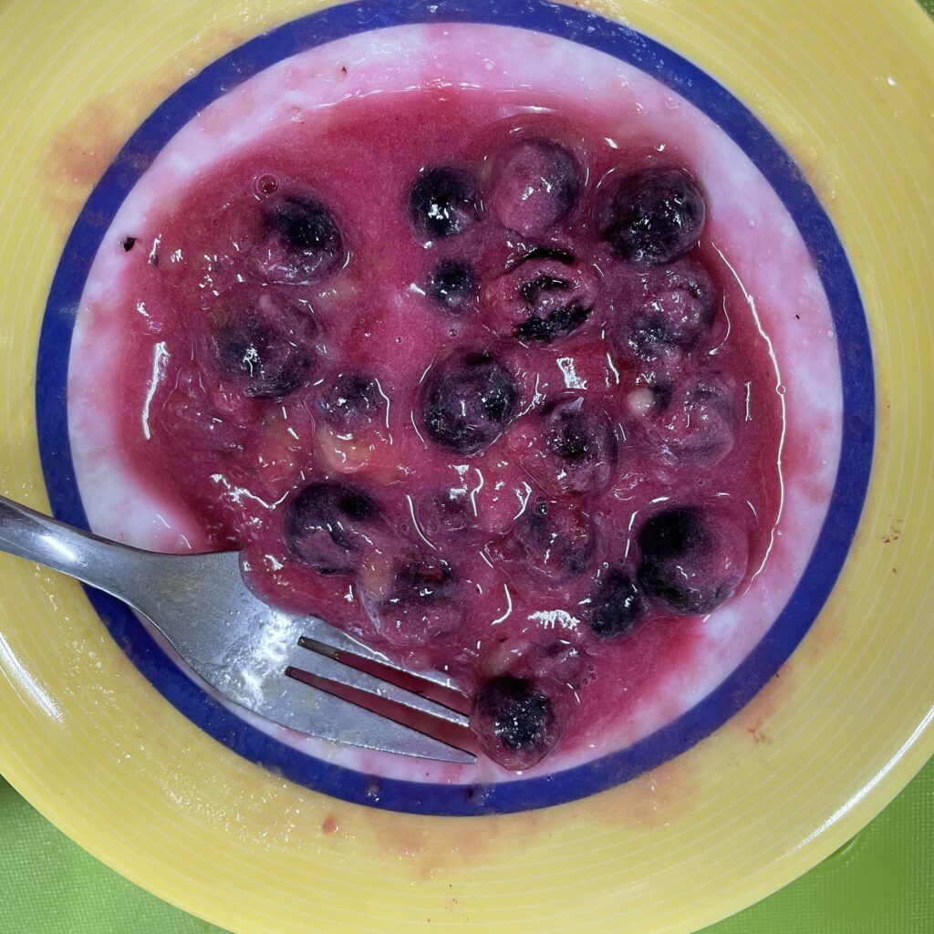 再加入1~2匙冷凍藍莓,攪拌均勻