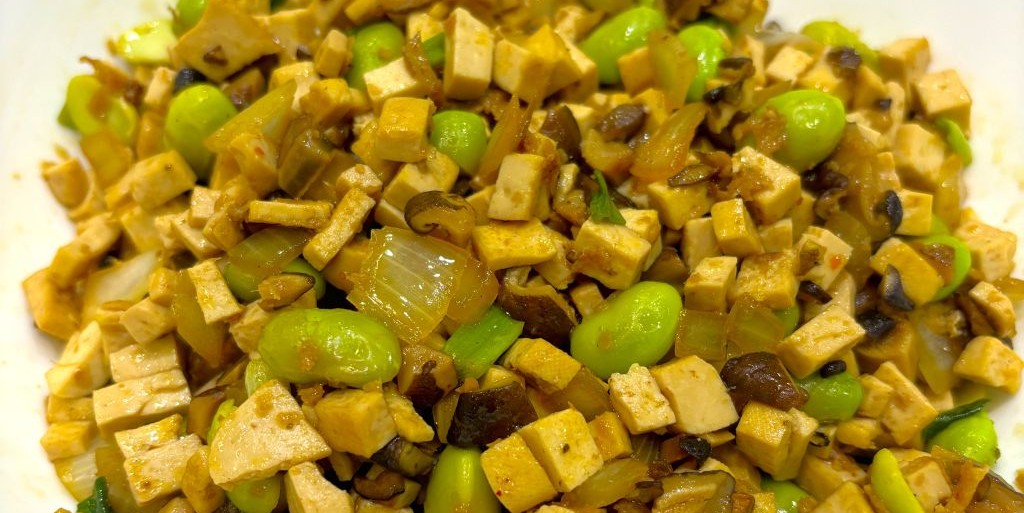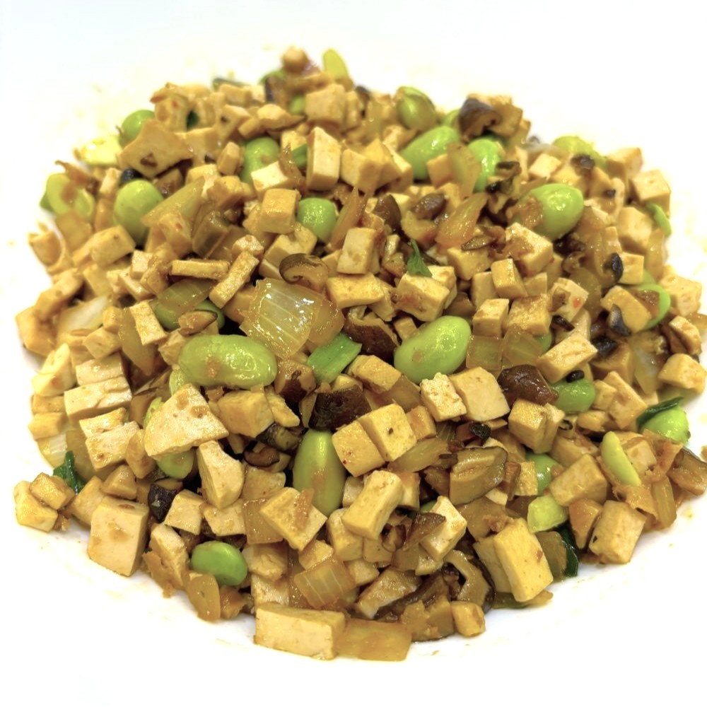 之前家人煮炸醬麵給我吃,但是用現成維X炸醬煮的。於是我在想:「能不能自己做做看炸醬呢?」於是這道南洋風味乾炒炸醬就誕生了!拌麵或是拌飯都好搭!豆干+毛豆讓你補充得到蛋白質,口感也超讚!