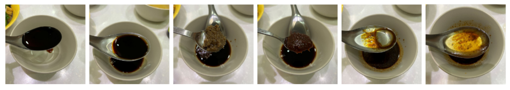 1. 準備醬汁:將醬油、素蠔油、薑泥、冬炎醬以及果寡糖混和,倒入2大匙香菇水後攪拌均勻。