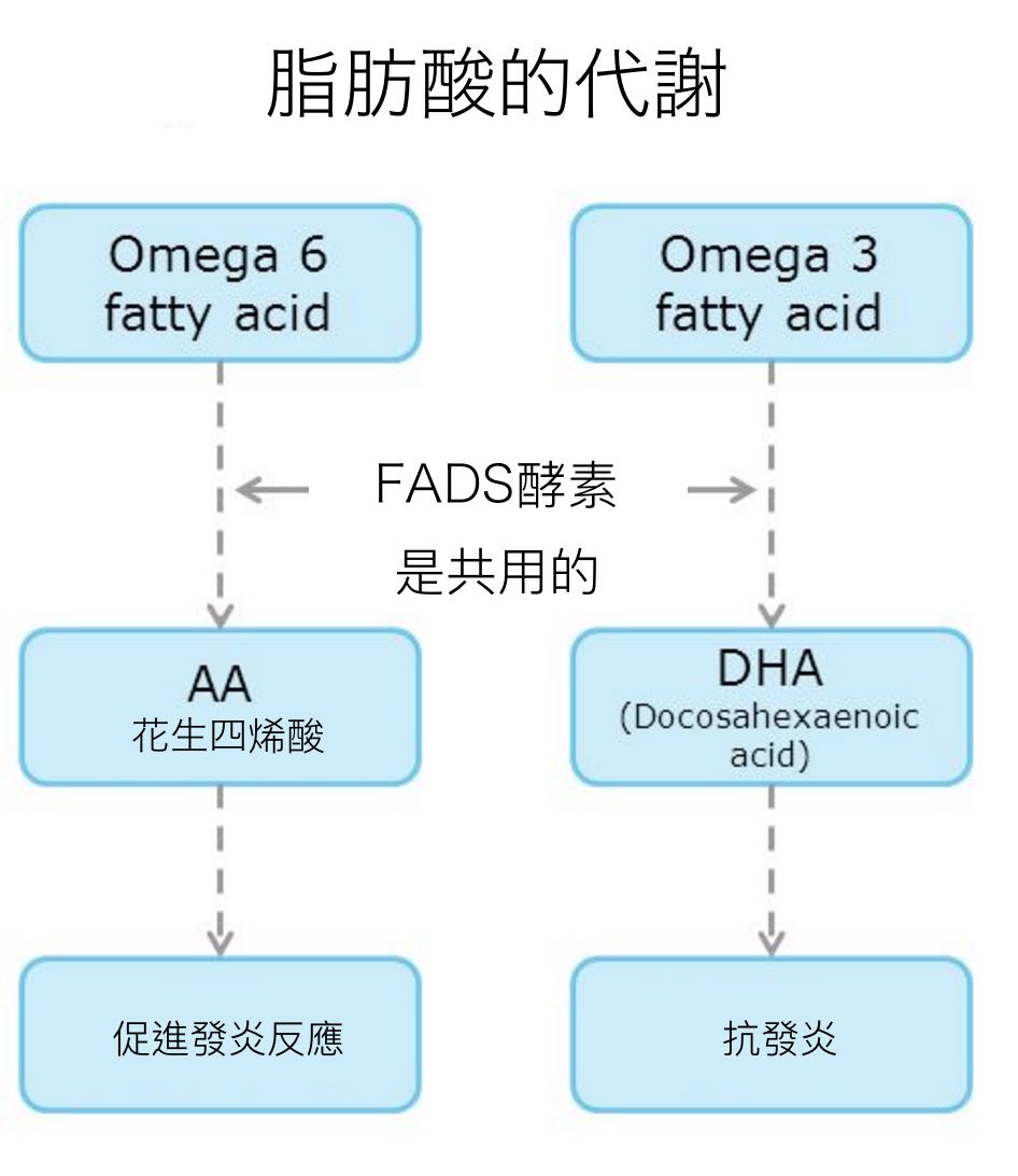 Omega-3脂肪酸有抗發炎的效果,而Omega-6脂肪酸則有促進發炎的效果。