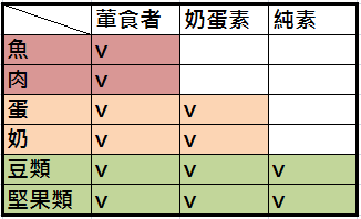 從左圖中可發現,素食者可食用的蛋白質種類比葷食者少,尤其純素者更應注意飲食,確保蛋白質攝取足夠。許多素食者一天喝一杯豆漿、吃一塊豆干,就以為蛋白質攝取足夠,然而事實上這卻是不夠的!