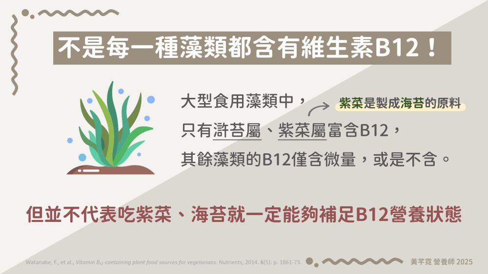 但是,這並不代表吃紫菜、海苔就一定能補足B12營養狀況!